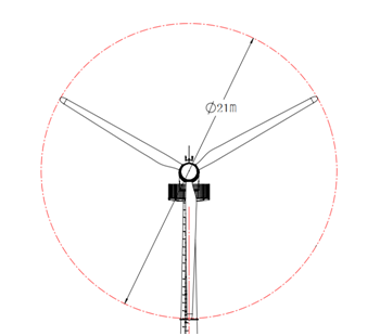 風輪直徑:21m 葉片數(shù)量及材質(zhì):3*增強型玻璃鋼