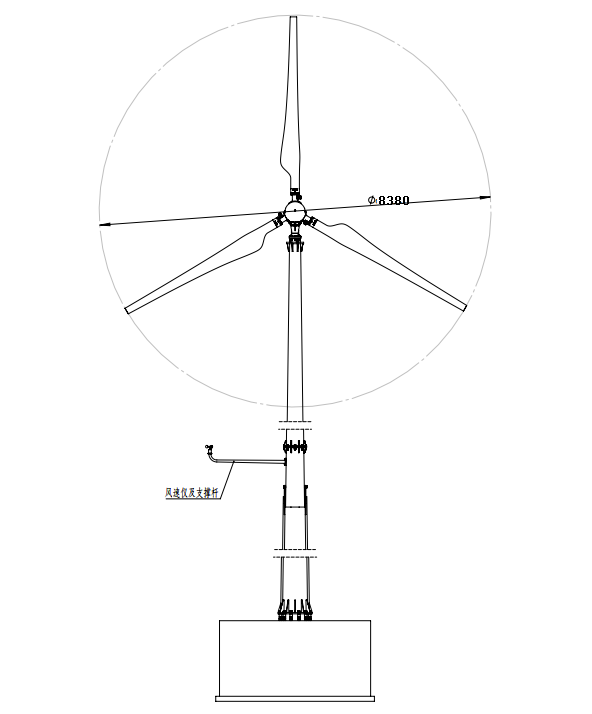 風(fēng)輪直徑:8.38m 葉片數(shù)量及材質(zhì):3*增強(qiáng)型玻璃鋼